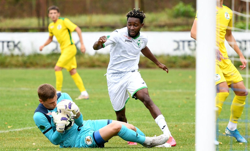 Ein wenig kurzweilige Unterhaltung – und die Möglichkeit, eine FC-Karpaty-Thermostflasche zu gewinnen – gab es heute vom Club per twitter: Mittelstürmer Enete Joseph und sein spektakulärer Torjubel.
