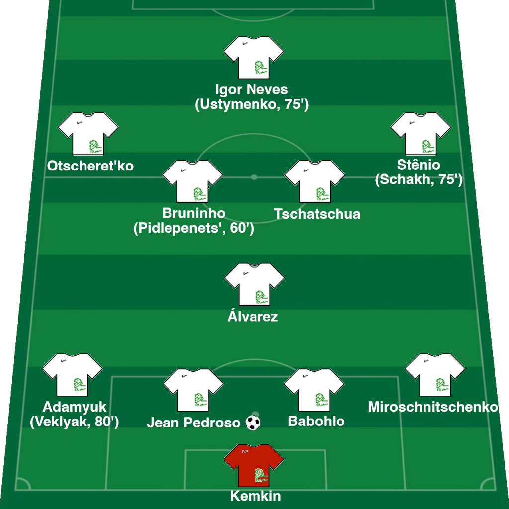 Trainer Lupaschko ließ sein gewohntes 4:1:4:1 spielen. Der zuletzt verletzte Taras Sakiv stand nicht in der Startaufstellung, vielleicht war seine Fitness noch nicht wieder ausreichend, näheres wusste man nicht, weswegen erneut Jean Pedroso in der Innenverteidigerposition und Volodymyr Adamyuk in der Außenverteidigung auflief. In der Startaufstellung standen: