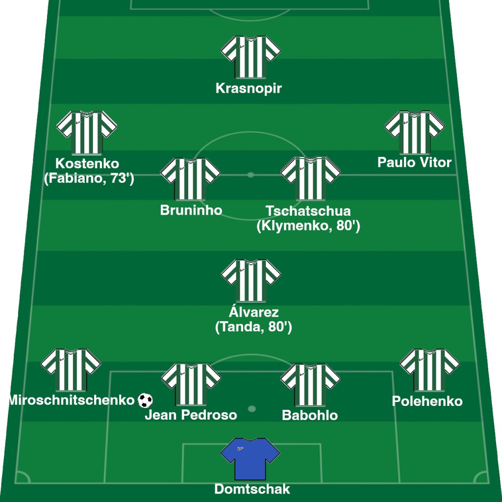 Während des Spiels kamen noch Fabiano (Yan Kostenko), Patricio Tanda (Pablo Álvarez), Vladyslav Klymenko (Ambrosij Tschatschua) zum Einsatz.