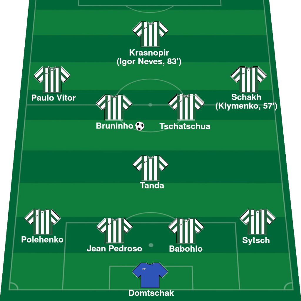 Während des Spiels kamen noch Vladyslav Klymenko (Artur Schakh), Igor Neves (Ihor Krasnopir) zum Einsatz.