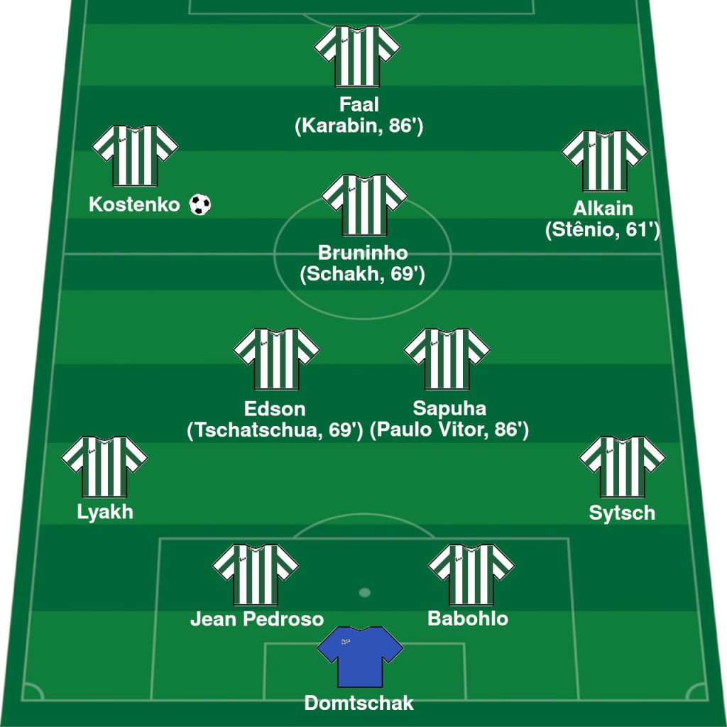 Im weiteren Verlauf kamen noch Stênio (Xeber Alkain), Artur Schakh (Bruninho), Ambrosij Tschatschua (Edson), Paulo Vitor (Yan Kostenko), Yaroslav Karabin (Baboucarr Faal) zum Einsatz.