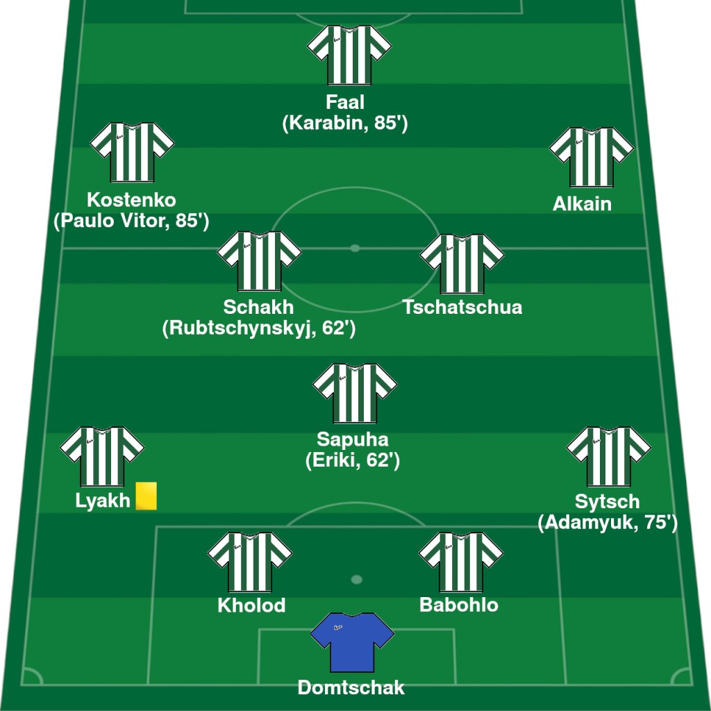 Im weiteren Verlauf kamen noch Valentyn Rubtschynskyj (Artur Schakh), Eriki (Marko Sapuha), Volodymyr Adamyuk (Oleksij Sytsch), Paulo Vitor (Yan Kostenko), Yaroslav Karabin (Baboucarr Faal) zum Einsatz.